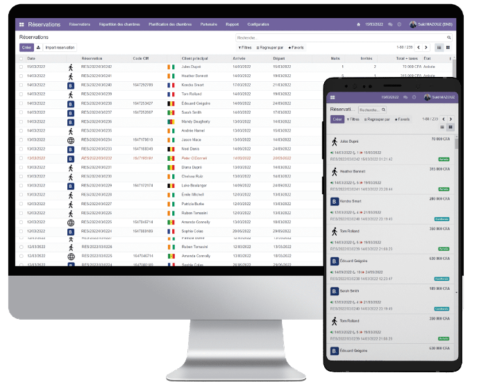 Solution de gestion d'hôtel connectée, collaborative, full web disponible 24h/24h, au sein d'une plateforme ERP Odoo pour gérer efficacement et simplement votre établissement hôtelier, appréciée par des millions d'utilisateurs à travers le monde.